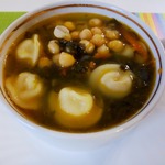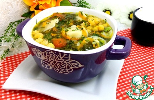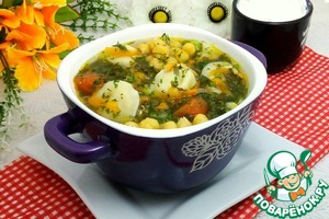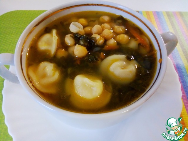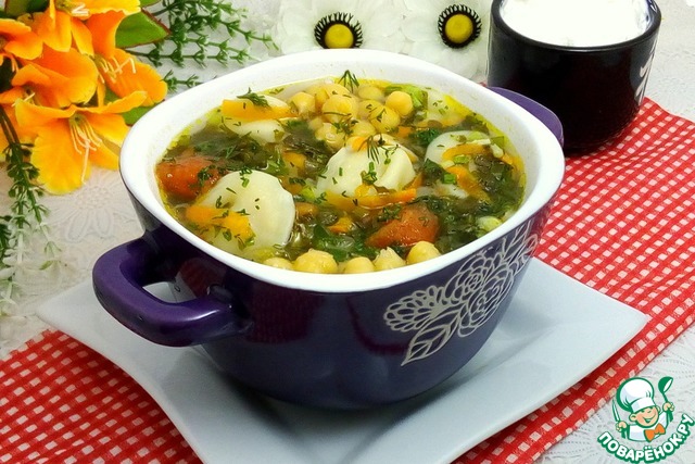 Щавелевый суп с нутом и пельменями