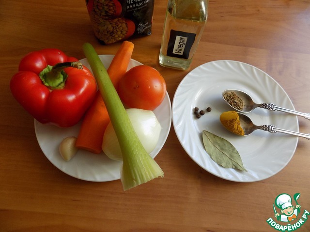 Ингредиенты для «Постный суп из чечевицы с овощами»: