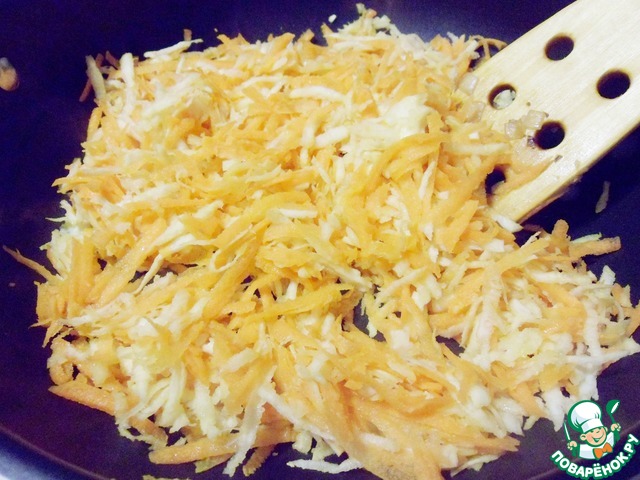 Обжарить на сковороде с добавлением столовой ложки растительного масла в течение 5 минут.