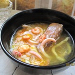 Очень ароматный и вкусный суп из жирной рыбы с креветками и кальмаром. Сочетание с этим микс риса и самых ходовых овощей делает суп очень полезным и не сложным в приготовлении!
