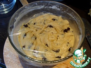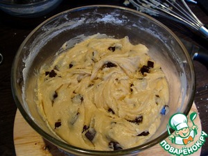После вмешиваем шоколад, тщательно распределите его по тесту.