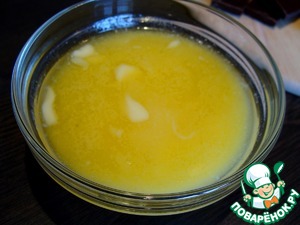 Сначала растапливаю масло. Я делаю это в микроволновке на большой мощности - с перерывами примерно через 10 секунд, чтобы перемешать и не перегреть.
