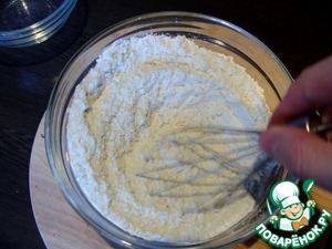 Отдельно смешиваем муку, крахмал, пекарскую соду, соль.