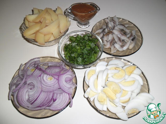 Ингредиенты для «Салат из сельди под фруктовым соусом»: