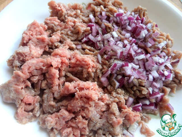 Теперь будем готовить ленивые пельмешки. Смешать воду с яйцом и солью.