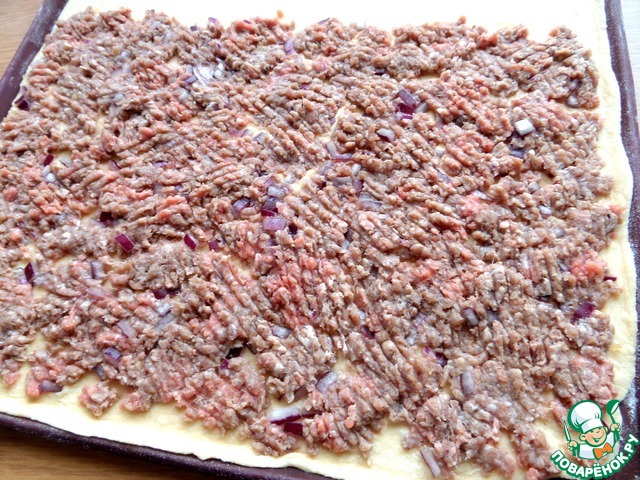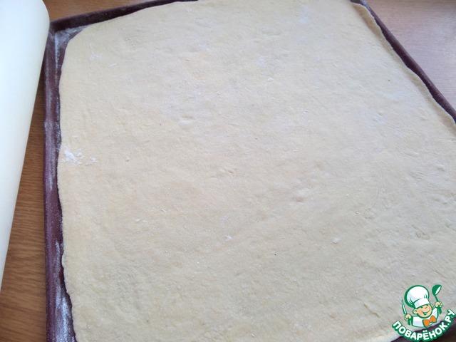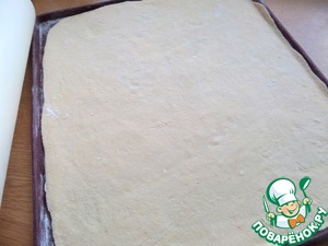 Раскатать тонко, у меня тесто заняло весь силиконовый коврик.