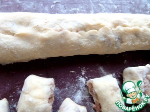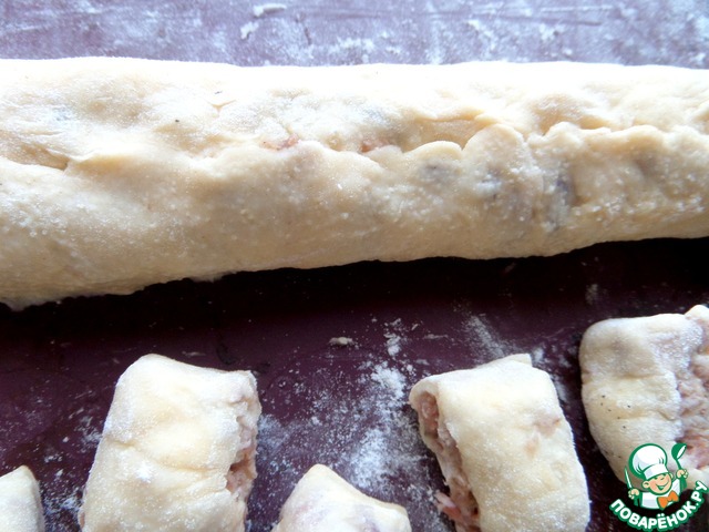 Чтобы рулетики получились тоньше, я начала их скручивать с двух сторон.