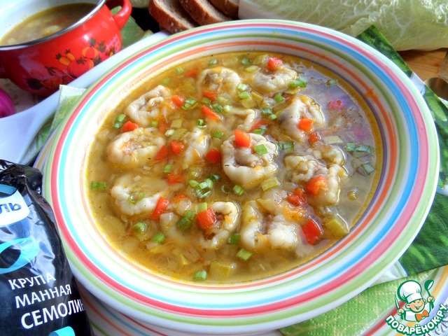 Ингредиенты для «Суп с рулетиками на семолине»: