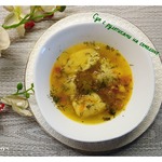 Такой суп с домашними а-ля пельмешками можно скушать большую тарелку-так это вкусно, наваристо и ароматно. Так как рулетики достаточно сытные, решила обойтись без привычной картошки в супе и нашла выход-молодой кабачок, которые сейчас продают круглый год в магазинах. Из остатков теста делаем лапшу-и вот Вам идея на новый супчик!