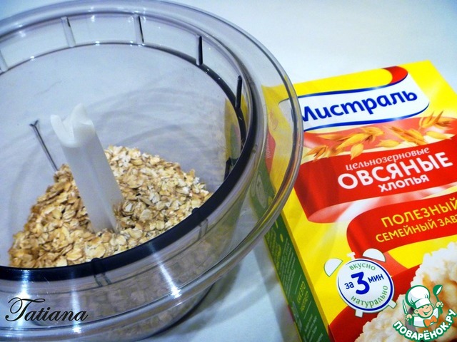 Овсяные хлопья измельчите в мелкую крошку (!!! не в муку, должны остаться небольшие кусочки ).
