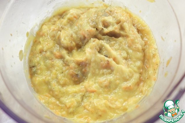 • Измельчаем до состояния пюре. Солим и перчим по вкусу.