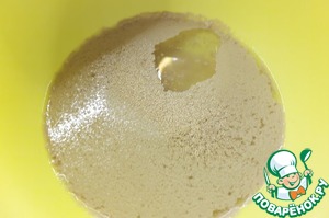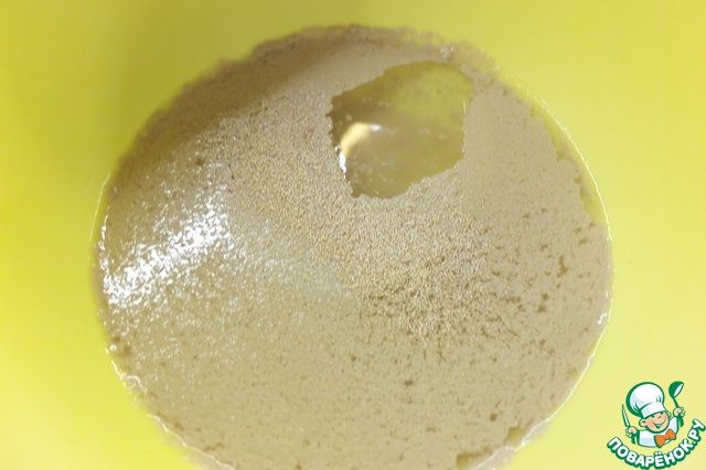 • В теплый картофельный отвар добавляем растительное масло, сахар, соль, дрожжи.
