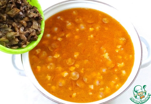Рецепт «Суп-солянка с грибами и копченостями»: