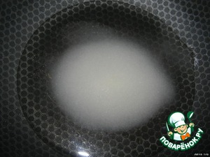 Воду вылить в сковороду, добавить туда сахар и довести до кипения.