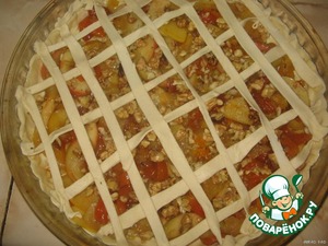 Оставшееся тесто разрезаем на полосочки и делаем решёточку.