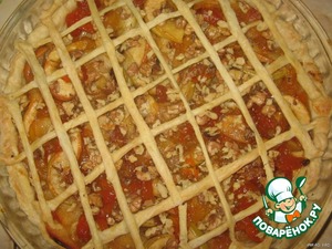 Рецепт «Слоeный пирог "Решeтка" с фруктами фламбе»: