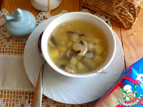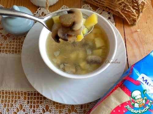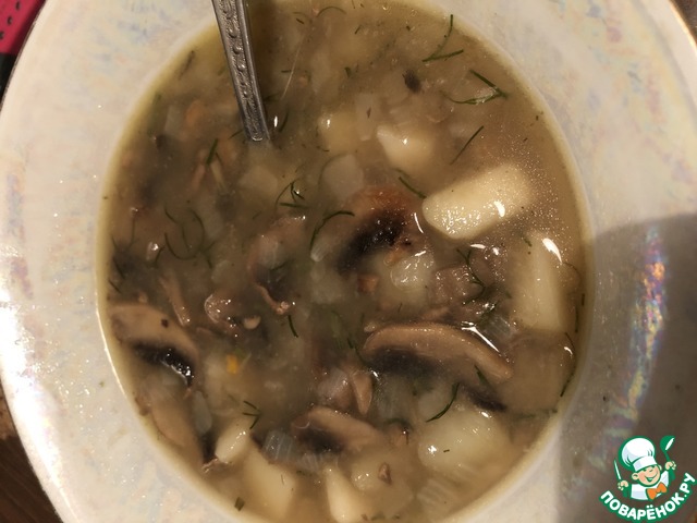 Постный суп из жаренных шампиньонов с луком, картофелем и манной крупой. Можно сказать, что суп больше картофельный с добавлением грибов. Суп из минимума ингредиентов, а получается вкусным, лёгким и в то же время насыщенным.