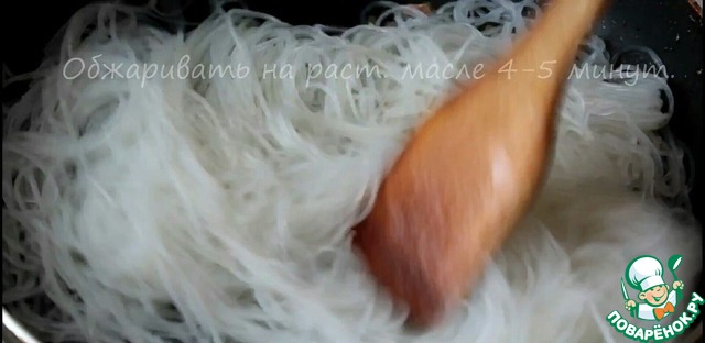 Одно дополнение. Фунчозу не заливают кипятком, а всё-таки варят 3-5 минут, после откидывают в дуршлаг и промывают холодной водой.