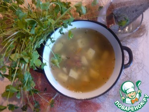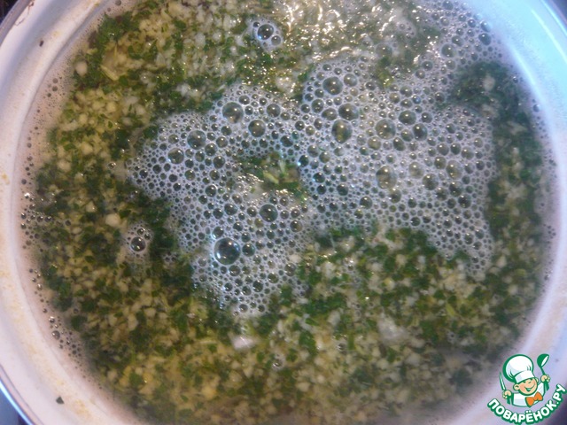 Наш соус отправляем в суп. Доводим до кипения. Снимаем с огня. Даем настояться минут 15.