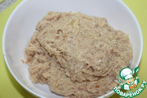 И пока варится рис, приготовим сами гонди. Куриное филе вместе с луком пропустить через мясорубку с самой мелкой сеточкой.