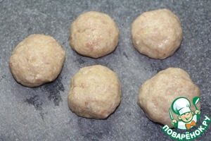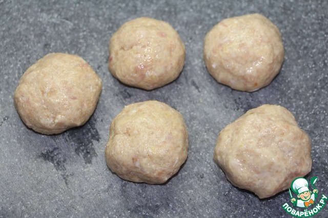 Сформировать из фарша фрикадельки, размером чуть меньше теннисного мячика.