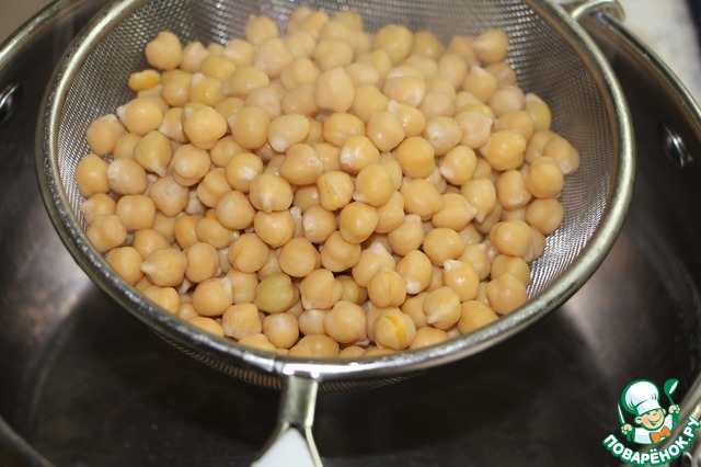 Откинуть пока еще не готовый нут на друшлаг.