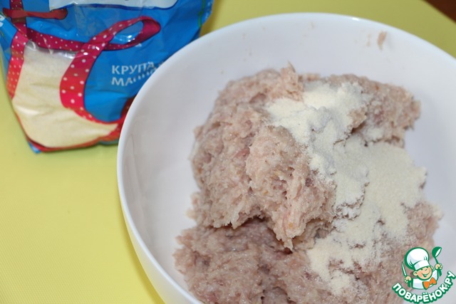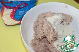 В фарш добавить манную крупу