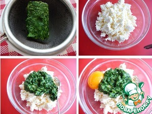 Для начинки, я взяла шпинат из заморозки. Дать стечь жидкости при разморозке.