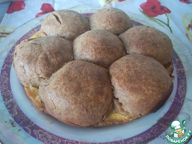 Каждый шарик теста расплющить в круг (или раскатать скалкой), выложить начинку.