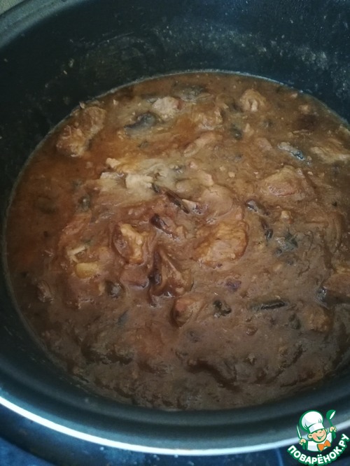 Рецепт «Свинина с грибами в хлебном соусе»: