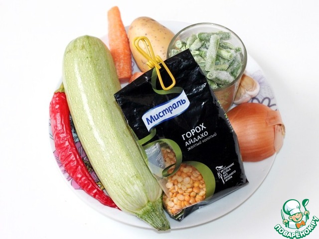 Ингредиенты для «Гороховый суп с соусом песто»: