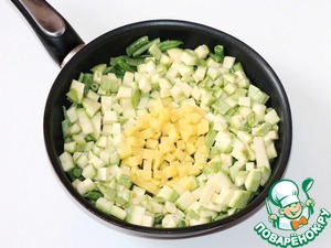 8. Добавляем порезанные кубиками очищенный картофель и кабачок.