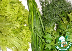 - Зелень (зеленый лук, укроп, петрушка) — 150 г