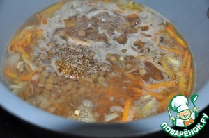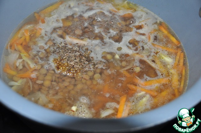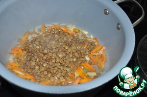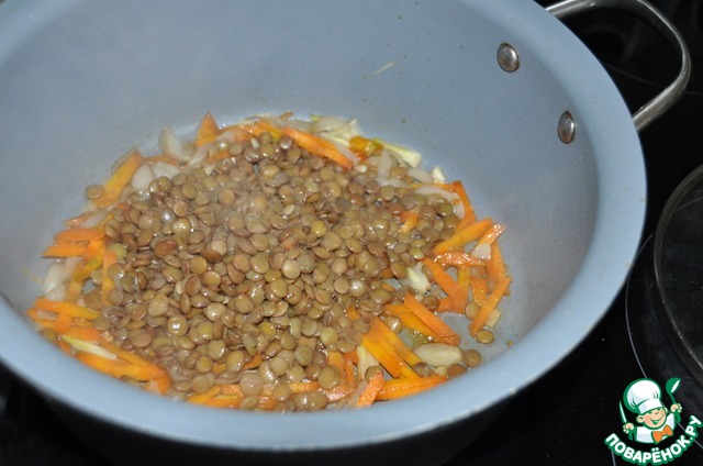 Добавляем сваренную до полу-готовности чечевицу.