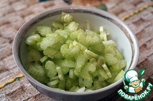 Сельдерей порезать шайбочками.