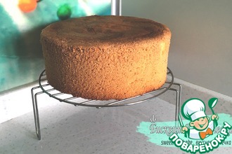 5) На дно формы для выпечки кладем пергамент, края формы смазать маслом. Вылить тесто в форму и выпекать 30-35 минут при 180. Готовый бисквит остудить на решетке.