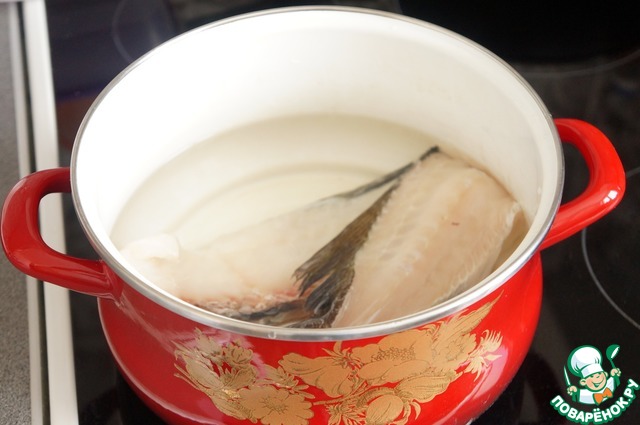 После разделки свежей трески остается хребет с хвостом. Из него предлагаю сварить суп.