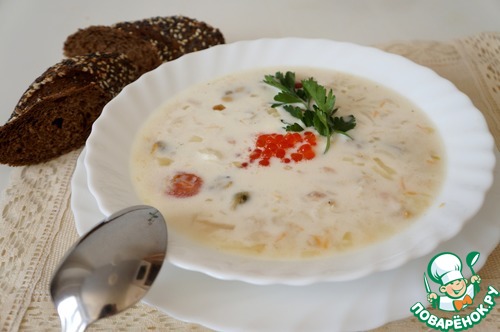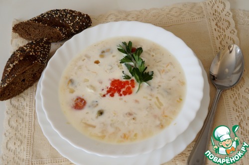 Суп с рисом, треской и икрой