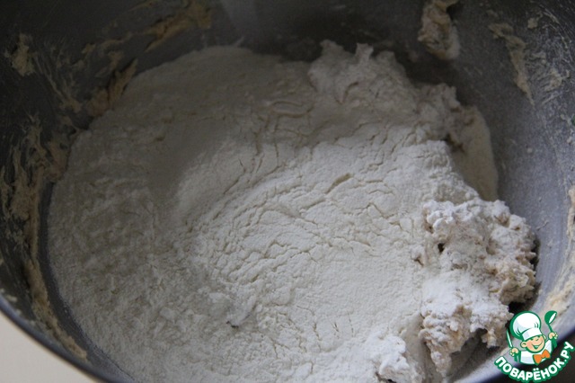Добавить муку и замесить тесто.