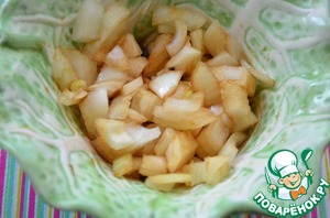 • Нарезать лук, замариновать в уксусе и соевом соусе в течение 15-20 мин.