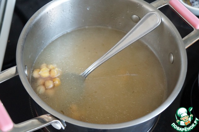 Важным компонентом блюда является нут. У меня он заранее замоченный и отваренный.