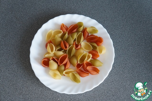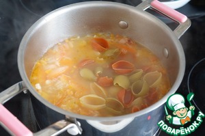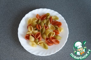 Вот такие цветные макароны стали украшением блюда. Добавила их в кастрюлю, размешала.