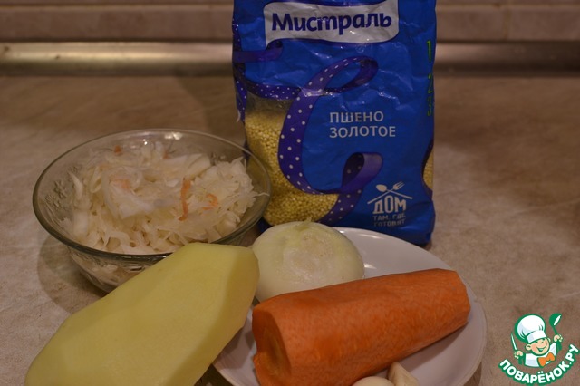Ингредиенты для «Щи из квашеной капусты с пшеном»: