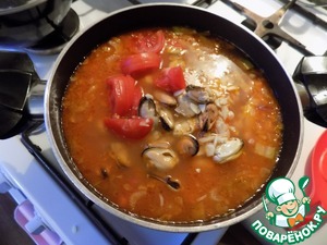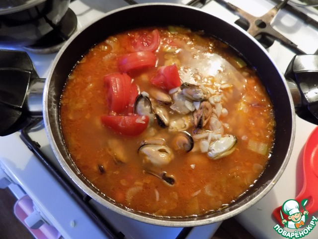 Ингредиенты для «Томатный суп с рисом и мидиями»: