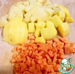 Морковь и картофель помыть, очистить и нарезать небольшими кусочками