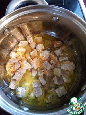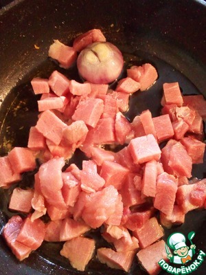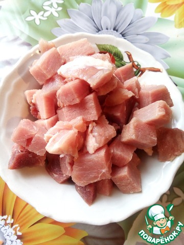 Мясо ( у меня свинина) нарезать небольшими кусочками.