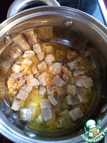 Обжарить на растительном масле с луком ( я не люблю жареный лук, поэтому обжариваю его целиком).