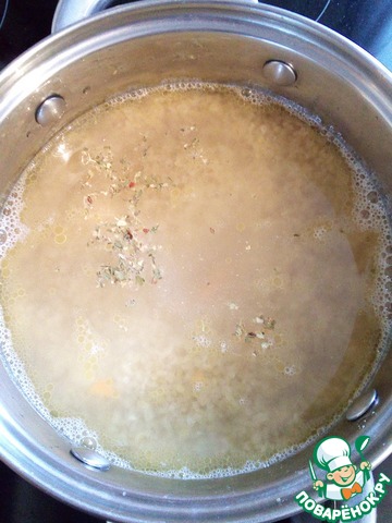 Заливаем водой так, чтобы вода покрыла крупу на 1,5 см.