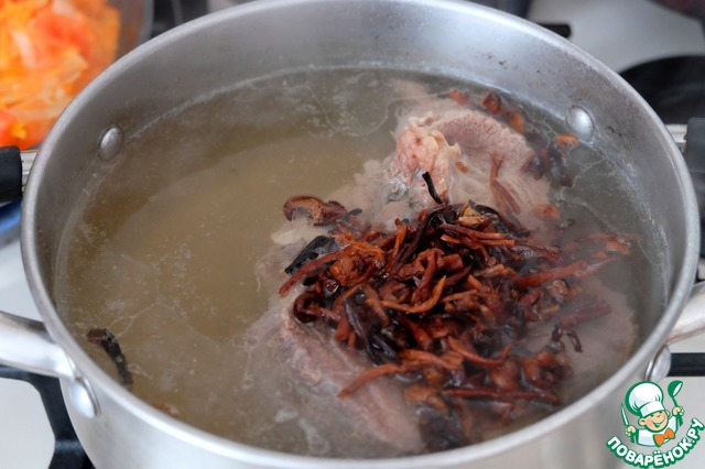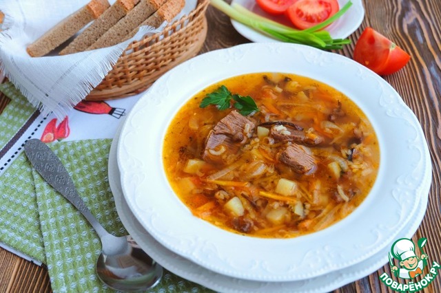 Рецепт «Суп рисовый с говядиной и опятами»:
