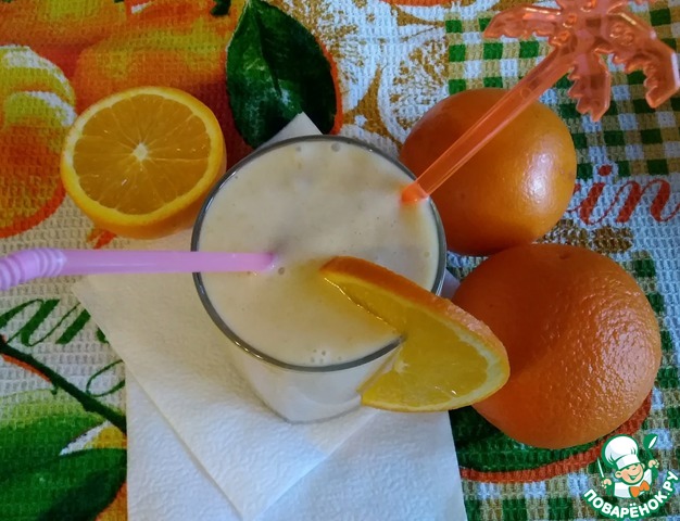 Смузи с хурмой и апельсином. Все ингредиенты, кроме ряженки и цедры половины апельсина кладем в чашу блендера и смешиваем. Смузи выливаем в большой бокал, сверху выкладываем слой ряженки или йогурта, украшаем цедрой. Очень апельсиново!